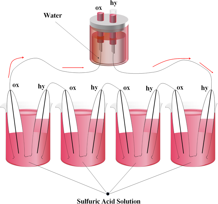 Grove’s 1839 gas voltaic battery diagram. (From Proceedings of the Royal Society) [1] Redrawn with permission of Taylor & Francis Journal.