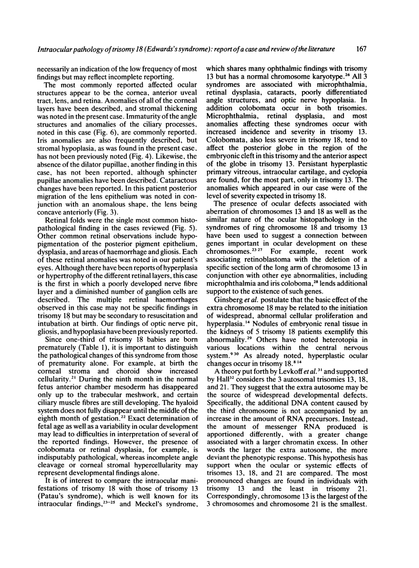 - Mullaney J. Ocular pathology in trisomy 18(Edwards' syndrome). Am J Ophthalmol. 1973 Aug;76(2):246–254. doi: 10.1016/0002-9394(73)90169-4. [DOI] [PubMed] [Google Scholar]