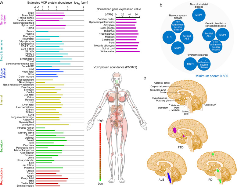 The chaperone VCP is a type II ATPase associated with diverse cellular activities (AAA+ ATPase, Fig. 1a). In humans, the major product of VCP gene expression is a protein of 806 amino acid residues and apparent molecular mass of 90 kDa. VCP is evolutionarily conserved; homologs have been identified in yeasts (Cdc48), worms (CDC-48), and flies (TER94, transitional endoplasmic reticulum ATPase) [10]. VCP serves as an integral part of a larger network that is dedicated to establishing and preserving proteostasis [11, 12].