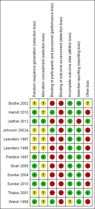 The following items were assessed independently by two authors using the risk of bias assessment tool (Higgins 2011) (Appendix 2).