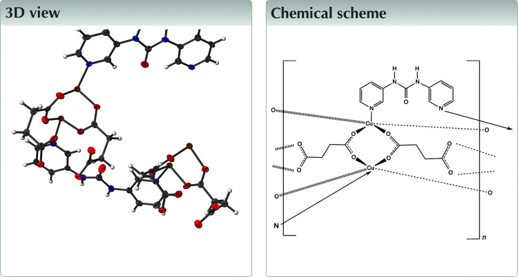 A divalent copper one-dimensional ribbon copper(II) coordination polymer, with 1,3-bis(pyridin-3-yl)urea and succinate ligands, was structurally characterized by single-crystal X-ray diffraction.