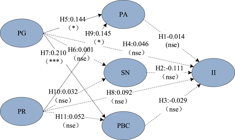 (H16). PG can positively affect residents’ II through PA (according to H3 and H7).