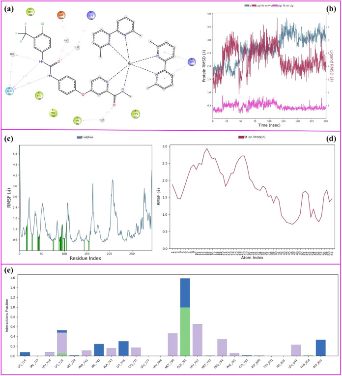 The induced fit docking XP (extra precision) glide scores, MM-GBSA ΔG binding free energies, and glide emodel scores of the ruthenium complexes as well as sorafenib against EGFR protein are given in Table 3.
