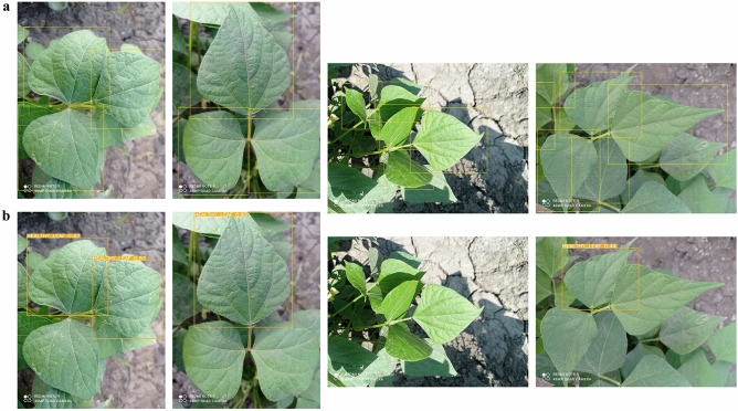 The labeling process focused on precision, aiming to encapsulate common bean leaves and pods within the smallest surrounding rectangle to minimize background inclusion. This approach resulted in approximately 9969 annotations in total (Table 1).