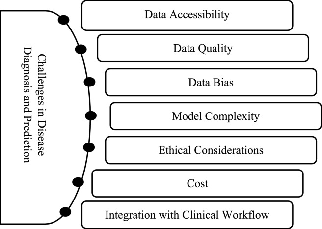 The potential of ML and DL in disease prediction and diagnosis is profound, not only enhancing the accuracy and efficiency of healthcare delivery but also advancing precision medicine and population health management. To accelerate progress, researchers must address challenges, such as data sparsity, noise, heterogeneity, and time dependency, as well as develop methods to better integrate DL into clinical workflows and decision support systems [16–19].