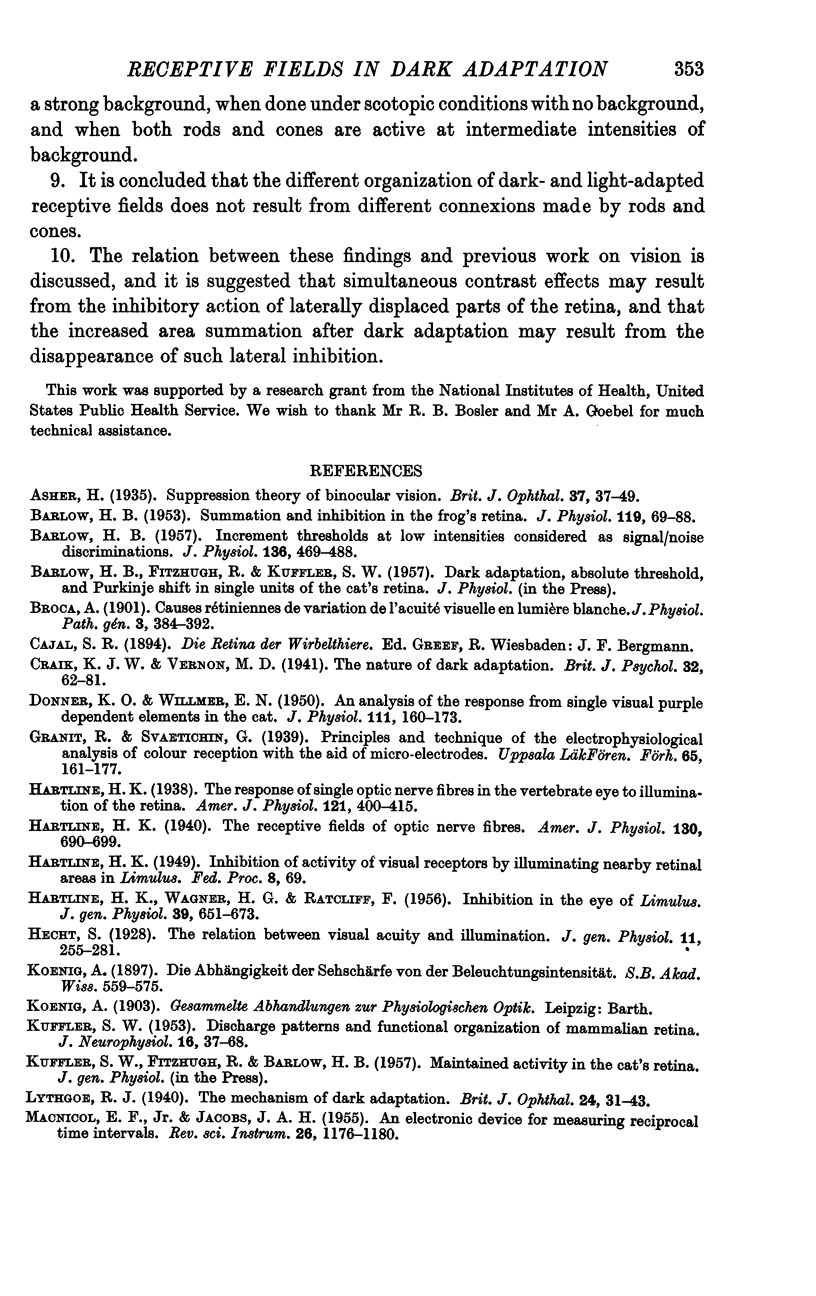 - BARLOW H. B. Summation and inhibition in the frog's retina. J Physiol. 1953 Jan;119(1):69–88. doi: 10.1113/jphysiol.1953.sp004829. [DOI] [PMC free article] [PubMed] [Google Scholar]
