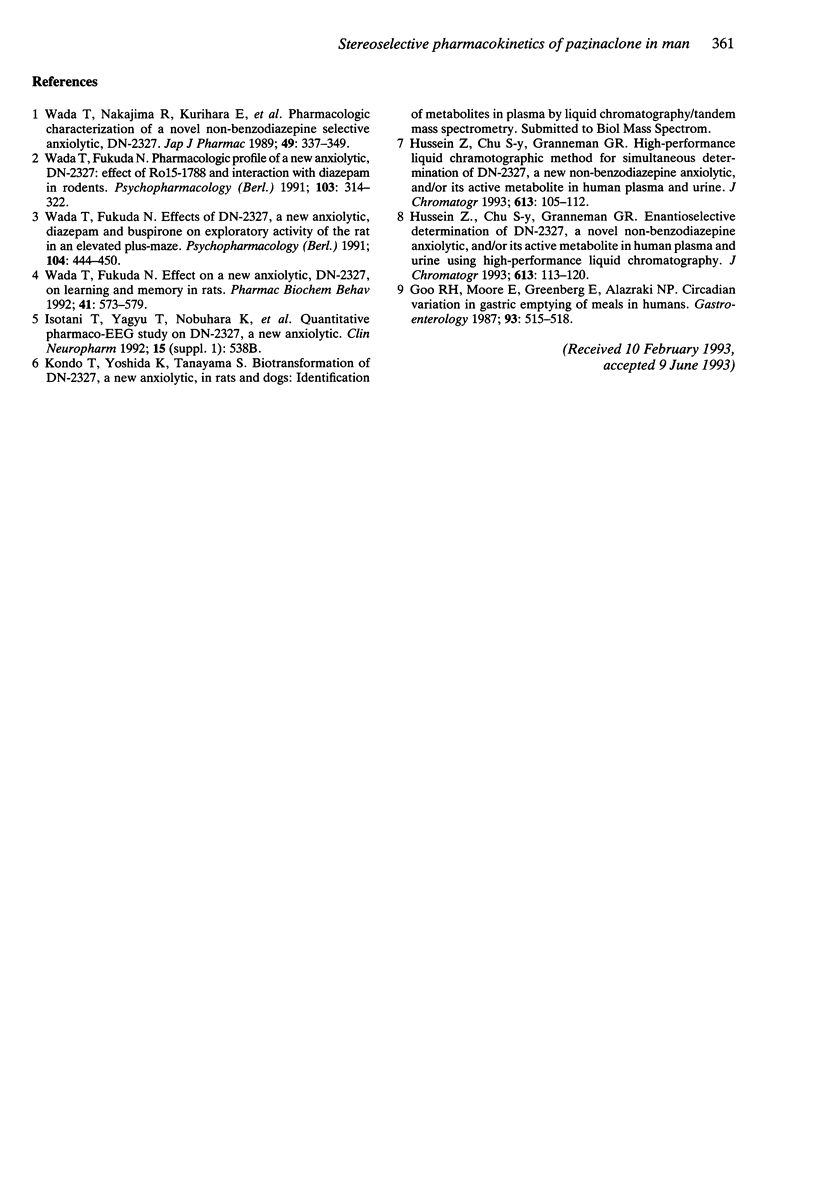 - Hussein Z., Chu S. Y., Granneman G. R. Enantioselective determination of DN-2327, a novel non-benzodiazepine anxiolytic, and/or its active metabolite in human plasma and urine using high-performance liquid chromatography. J Chromatogr. 1993 Mar 5;613(1):113–120. doi: 10.1016/0378-4347(93)80203-g. [DOI] [PubMed] [Google Scholar]