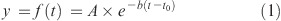 where y is the serotonin concentration (μM) at any given time (t), to is the time (s) at the start of uptake, and A is the concentration of serotonin (μM) at t0.