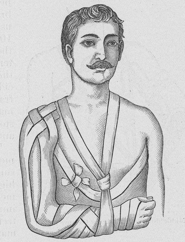 After the Dutch army surgeon Antonius Mathijsen (1805–1878) introduced the hard setting plaster of Paris bandage in 1852, plaster bandages for fractures of the proximal humerus were developed. Hennequin’s plaster bandage (Fig. 7) used the principle of later hanging casts [9]. Other modified nineteenth-century bandages still in use include the bandages proposed by Desault (Fig. 8) and Velpeau (1795–1867) (Fig. 9).
