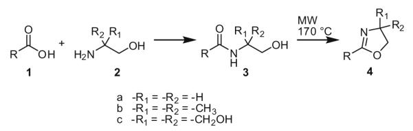 Synthesis of 2-oxazolines 4b from carboxylic acids 1 using open vessel mode microwave heating