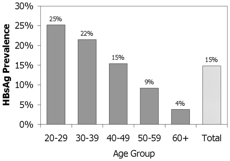 Prevalence of HBsAg among Asian-Pacific Islander Populations in New York City by age group. Data from reference 18.