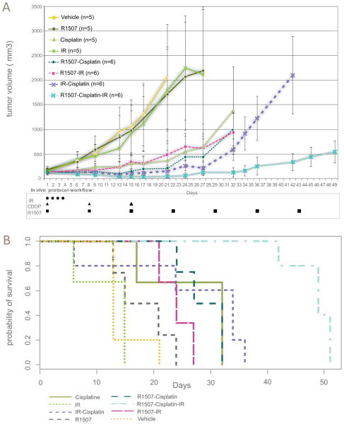The addition of R1507 to CDDP or IR induced non-significant delays in tumor growth in vivo