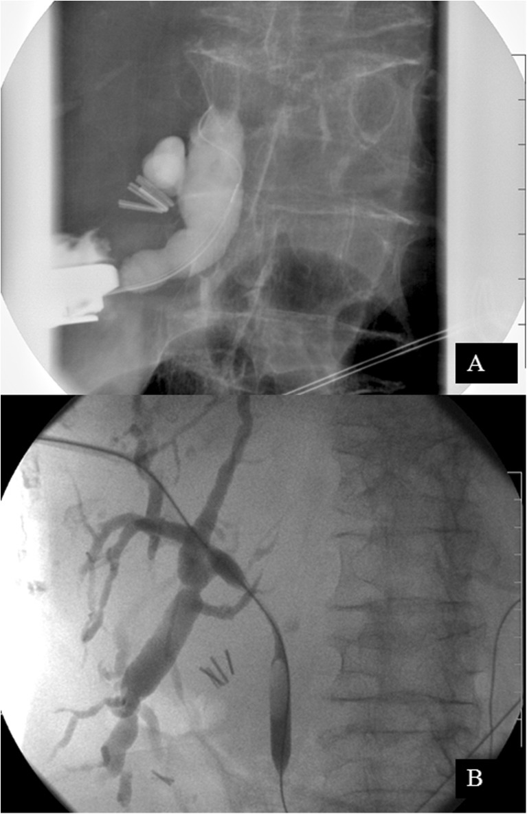 The Stewart-Way classification was created to describe the various patterns of injury and assist with choice of treatment [13]. Properly identifying the site of injury and proximal and distal components of the biliary tree are essential [4, 14]. The technique utilized to obtain a complete cholangiogram may vary and include multiple techniques: ERCP, percutaneous transhepatic cholangiography (PTC) or intra-operative cholangiogram (Fig. 4). A delayed stricture often presents with abnormal liver function tests or non-specific abdominal complaints. The gastroenterologist may choose to obtain an ERCP or magnetic resonance cholangiopancreatography to better define the anatomy. Prompt recognition and resumption of biliary drainage must be accomplished before biliary cirrhosis develops.