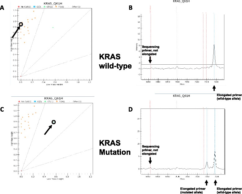 Methods currently available for KRAS, NRAS and BRAF mutational analysis include Sanger sequencing, which is still regarded as the gold standard, and numerous alternatives as allele-specific PCR [28], single nucleotide primer extension assays [27, 29], pyrosequencing [30], real-time PCR [31], high resolution melting curve analysis [30, 32], amplification refractory mutation system (ARMS)-Scorpion assay [33], strip or chip assay combining PCR followed by hybridization to a KRAS or NRAS-specific probe [27, 34], next-generation sequencing (NGS) [34] and matrix assisted laser desorption/ionization mass spectrometry (MALDI MS) [17]. However, past studies with MALDI MS mainly applied genetic panels provided by the manufacturer that cover many mutations that are not recommended to assess. In consequence these panels are not cost-effective for routine use.