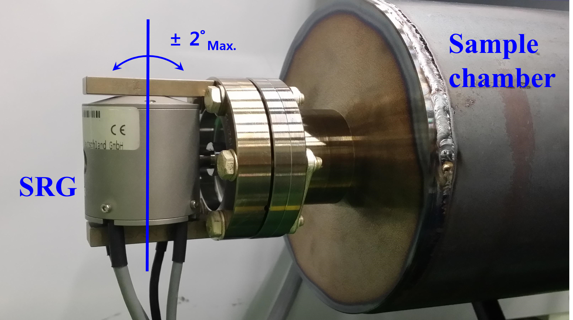 - Adjust the SRG flange assembly and the sample chamber so that the axis of the SRG head is vertical using the level meter; within ±2° (max) (Figure 4). Tighten the flange joint between the sample chamber and the AVCh, face-to-face, while maintaining the SRG flange's level. Refer to the SRG user's manual for detailed instructions.