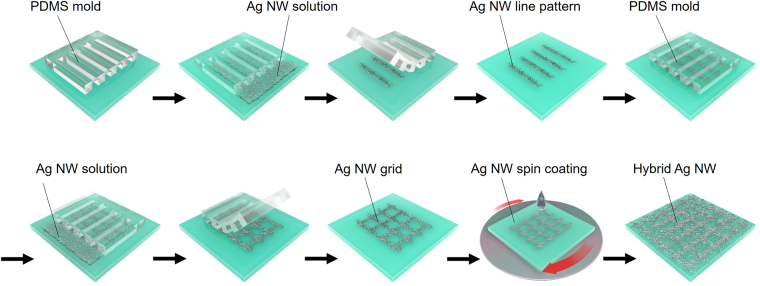 Schematic illustration of the steps involved in fabricating hybrid Ag NW electrodes.