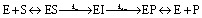 where E denotes enzyme, S the drug substrate, EI the acyl intermediate, and P the hydrolyzed drug product. Previous studies have shown that either the acylation rate (k