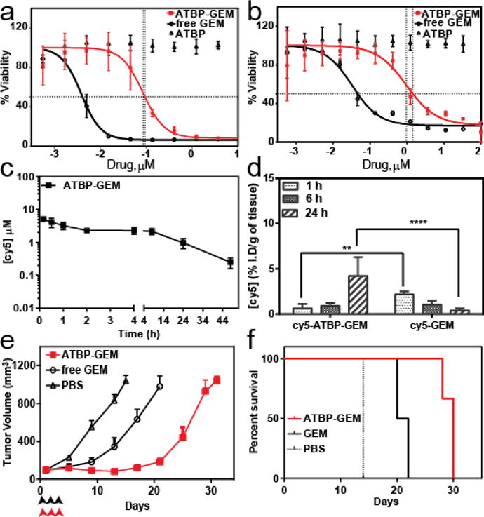 Figure 4. In vitro and in vivo activity of ATBP–GEM nanoparticles.