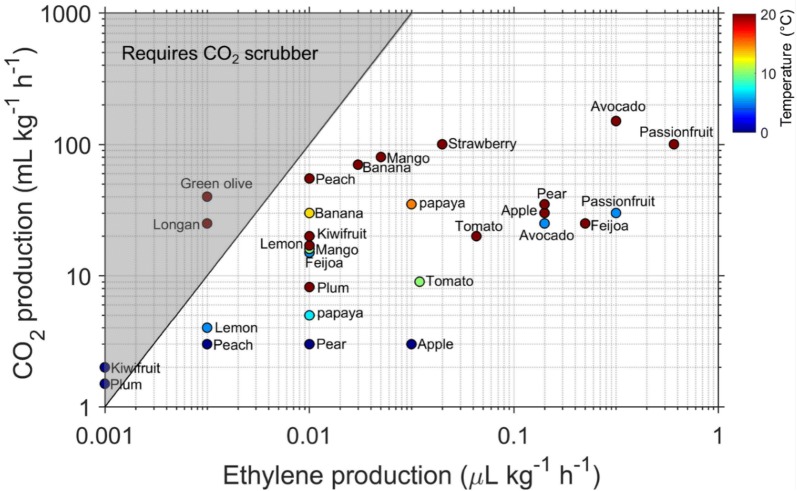 | Ethylene production | Ethylene production of avocado and strawberry during storage following different scheduling of controlled atmosphere | [38] |