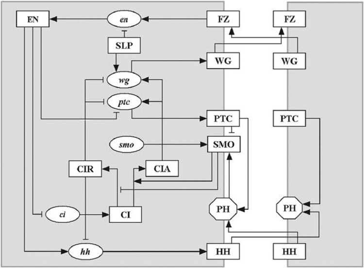 Drosophila melanogaster, which is the common fruit fly, has served as a model system to study many aspects of development for the past 100 years. Drosophila has a short life cycle, it is easily grown, the genome is sequenced, and many of the components of the signal transduction and gene control networks involved in patterning are known. However, less is known about how these networks produce the desired spatiotemporal pattern of gene expression. Development is a sequential process in which later stages build on earlier stages, but within stages there are often multiple feedback loops in signaling and gene control networks that may serve to buffer against perturbations caused by fluctuations in morphogen concentration and other components. Understanding the structural features in a network that ensure reliable patterning in the face of various perturbations is a major unresolved problem.