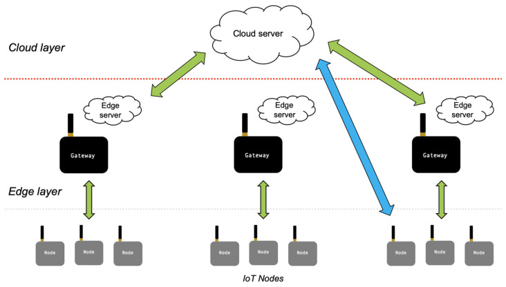 The solutions described in the previous sections allow us to run the AI algorithm on end devices but implementing powerful DNNs on tiny devices is still challenging (e.g., decision making and real-time execution). In some circumstances, it is necessary to transfer the computations from end devices to more powerful entities [96]. Since the edge server is close to users, it could be the best approach to solve the problems related to the calculation in optimal times. The easiest way to utilize the edge server is to offload all the computation from end devices to the edge server: The end devices will send their data to a nearby edge server and receive the corresponding results after server processing. When sending data to an edge server, data preprocessing is useful to reduce redundancy and thus decrease communication time. An example could be Glimpse [97] that is a continuous, real-time, object recognition system for camera-equipped mobile devices. Starting from the video, Glimpse identifies objects and labels and traces them. Because the algorithms for object recognition entail significant computation, Glimpse runs almost always on server machines. It uses change detection to filter which camera frames are offloaded. If no changes are detected, Glimpse will perform frame tracking locally on the end device. This preprocessing makes real-time object recognition possible.