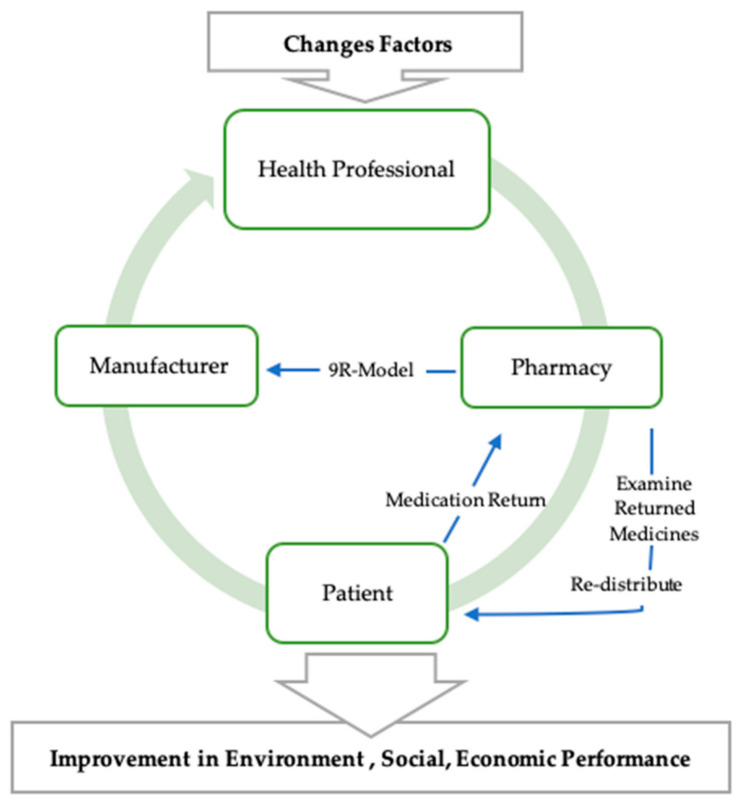 Open medicines return events can be jointly held by pharmacies and local councils to help spread awareness in communities about the importance of returning medicines so that they can be destroyed according to government guidelines. These events can help to minimise pharmaceutical waste and increase recycling and the proper disposal of medication [81]. They can also help to increase awareness regarding how following appropriate procedures helps minimise environmental effects [81]. Raja et al. [82] proposed that governments develop and implement a national medication return programme to gather unused or terminated medications at each hospital, so that they can be disposed of properly. Improving the pharmaceutical waste management system and achieving a green PSC requires the cooperation of the entire supply chain from the manufacturers and wholesale suppliers to the GPs, community pharmacies, and patients.