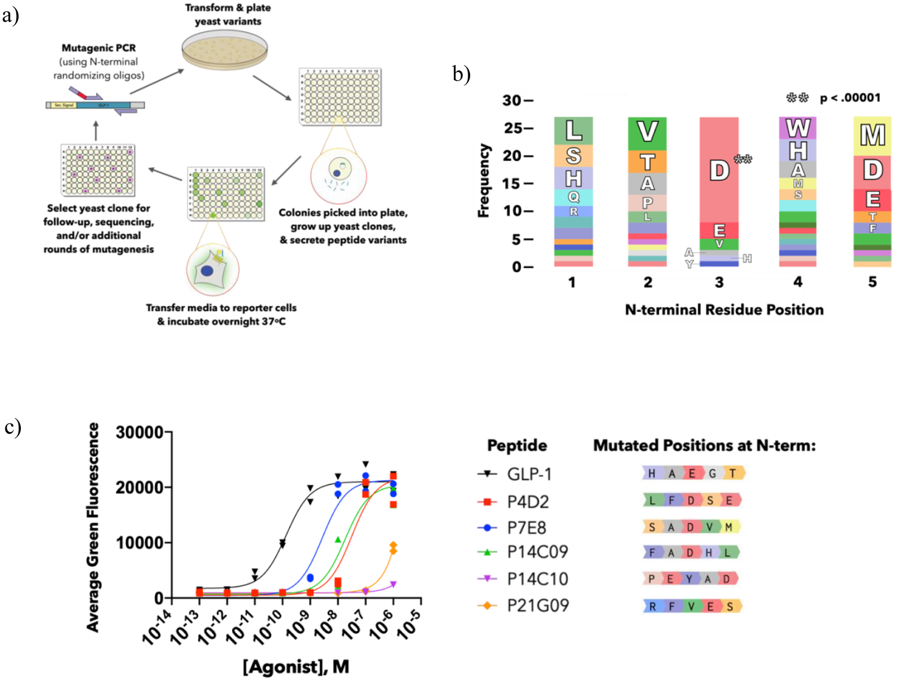 The authors would like to thank A. Bisaria for graciously providing the lentivirus 3rd generation system used to engineer GLP-1R into cell lines. We would also like to thank the Qi lab at Stanford for use of their tissue culture facilities and for providing the HEK293T cells for lentivirus production. We would like to thank J. Yeung and B. Atsavapranee for technical assistance on screening experiments. We are grateful to past and current members of the Cochran lab who contributed to scientific discussions, particularly A. Mitchell for assisting with vectors used for yeast peptide secretion.