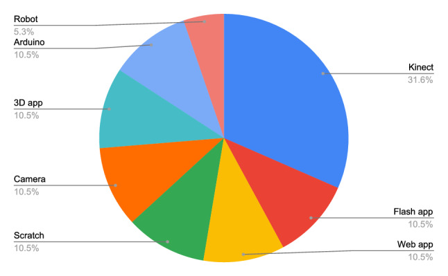 Research question 2 (RQ2) focuses on the hardware technologies used in the primary studies. The number of prototypes that make use of Kinect [27] is relevant, which can be useful for future works in this field. It is worth to highlight the little use made of visual patterns such as QR-codes. We can also highlight that there is not a single prototype that makes use of NFC/RFID, a technology that is quite popular and widely available in mobile devices. It is striking that there are no prototypes based on tablets or smartphones. Finally, we can also point out the little use made of sensors and, in general, wearable devices.