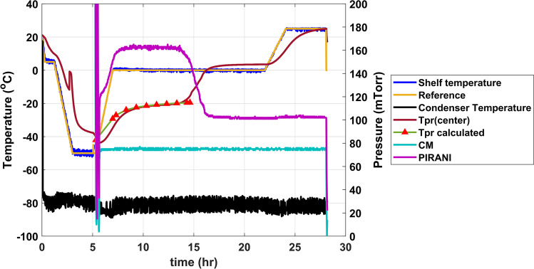 Lyophilization is a commonly used manufacturing process to prepare dried solid dosage forms of drug molecules that are vulnerable to physical and chemical degradation in the liquid state. The lyophilization process involves three steps; freezing, primary drying, and secondary drying. In the first step, a frozen matrix is formed wherein water is converted into ice crystals leaving behind solutes in the interstitial spaces. In the second step, frozen water is removed by sublimation under vacuum and low-temperature conditions. In the third and final step, the remaining unfrozen water is removed by desorption at relatively high temperatures.