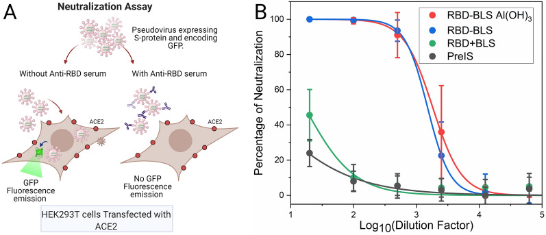 Immunization with RBD-BLS elicit antibodies with neutralizing activity against a SARS-CoV-2 S pseudotyped virus transduction