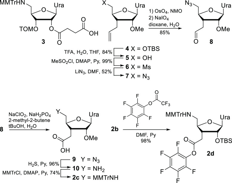 3′-CH2COOPfp-5′-MMTrNH-2′-O-TBS-3′,5′-dideoxyuridine (2d)