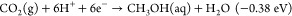 Recently, photocatalytic solar fuel production has been gaining traction due to its simplicity, cost-effectiveness, and environmentally benign process. There are two widely known and sustainable technologies to produce renewable fuels, namely, photocatalytic CO2 reduction and water splitting to produce H2. For photocatalytic reactions to occur, there are two main processes occurring, which is the reduction and oxidation half-reactions. For a particular reduction half-reaction to occur, the CB/LUMO of the material must be more negative compared to the redox potential. Conversely, the VB/HOMO of the photoresponsive material should be greater than that of the redox potential of the oxidation half-reaction for it to be feasible.33Equation 1 shows one electron reduction of CO2 to the CO2– radical.34 However, the reaction is deemed unfeasible due to it possessing a high redox potential. Not only that, it is impossible for a photocatalyst to supply enough potential to transfer a single electron to a CO2 molecule.35 Hence, reactions with low redox potentials are proton-assisted multielectron reactions, making them achievable over a wide range of materials.36 As shown in eqs 2–5, CO2 can be reduced to a wide variety of products, namely, CO, HCOOH, CH3OH, and CH4, respectively. The product selectivity depends on the amount of the number of electrons supplied to the CO2 molecule. For instance, photocatalytic CO2 reduction usually favors the production of CO and HCOOH due to it only requiring two electrons to initiate the reaction. On the other hand, the formation of CH3OH and CH4 requires more electrons and protons (6 and 8, respectively) to facilitate the reaction. For the photocatalytic water splitting to produce H2, it involves two crucial steps. The first step is shown in eq 6, where two holes are utilized to oxidize the water molecules to produce oxygen and two protons. Subsequently, the protons and electrons proceed via eq 7 to produce H2.37,38