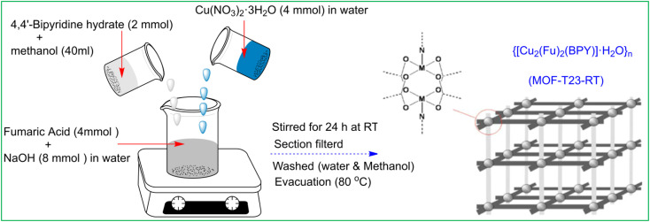 Synthesis of MOF-T23-RT, {[Cu2(Fu)2(BPY)]·H2O}n