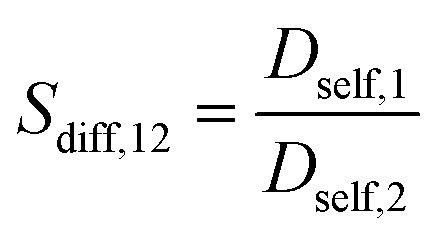 where ci, Dself,i, and fi represent the gas concentration at the feed side, self-diffusivity of gas, and feed side fugacity of the gas species i, respectively. The diffusion selectivity and membrane selectivity (component 1 over 2) are defined as
