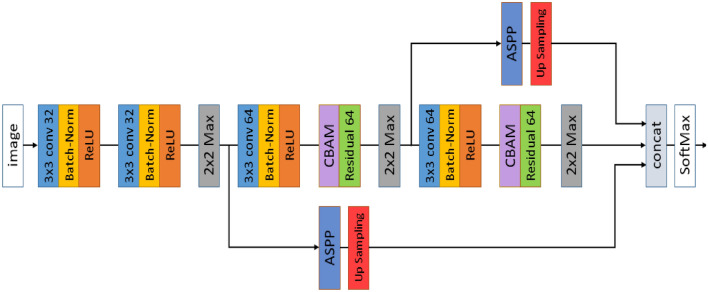 Backbone: U-Shaped Network Loss: not mentioned The proposed model employed blocks of the U-Sharped Network to transfer the information of the feature efficiently. The proposed model was prearranged into a multi-path fashion to train the network with different settings via a majority voting strategy to improve segmentation |